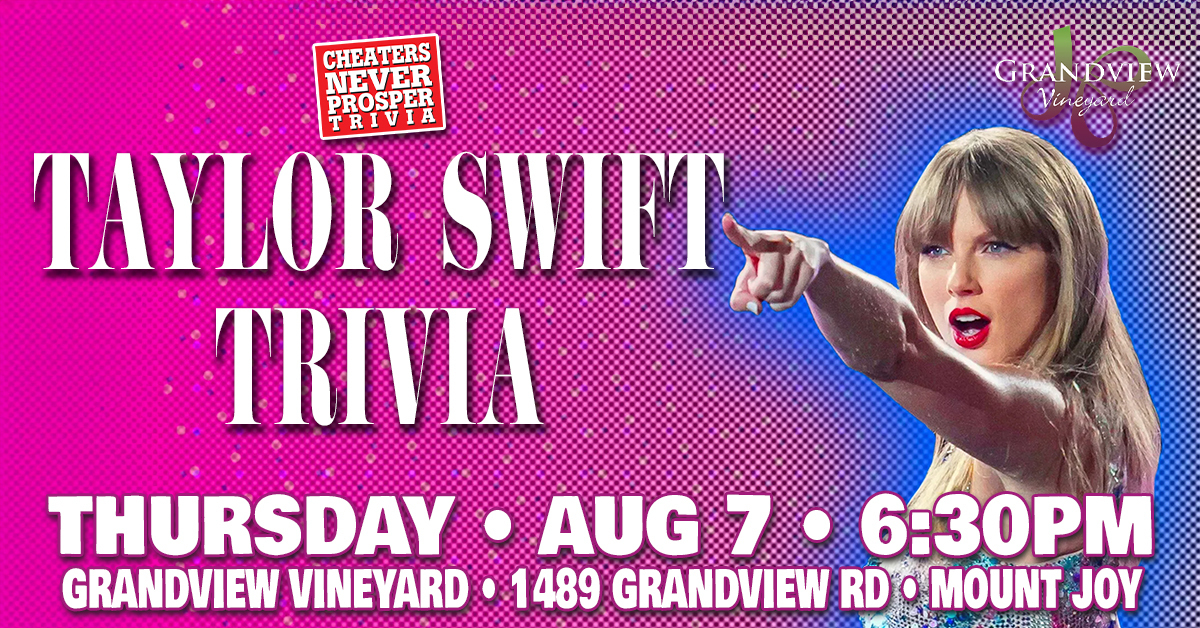 ...are you ready for it? Get ready to celebrate the iconic music of Taylor Swift at our upcoming trivia night. Whether you've been a fan since her country roots or fell in love during the synth-pop era, this event is for you. Test your knowledge of Taylor's lyrics, music videos, and career milestones. From Teardrops on My Guitar to Fortnight, every era of Taylor's music will be explored. Gather your fellow fans, wear your best Taylor-inspired outfit, and join us for a night of fun, fandom, and maybe even some singing. Ready to prove you're the ultimate Swiftie?