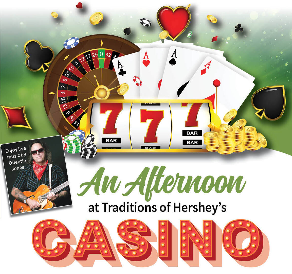 Are you feeling lucky? Get an exciting casino-style experience at Traditions of Hershey on Thursday, Jan. 15, from 2:00 to 4:00 p.m., at 100 N. Larkspur Drive, Palmyra.