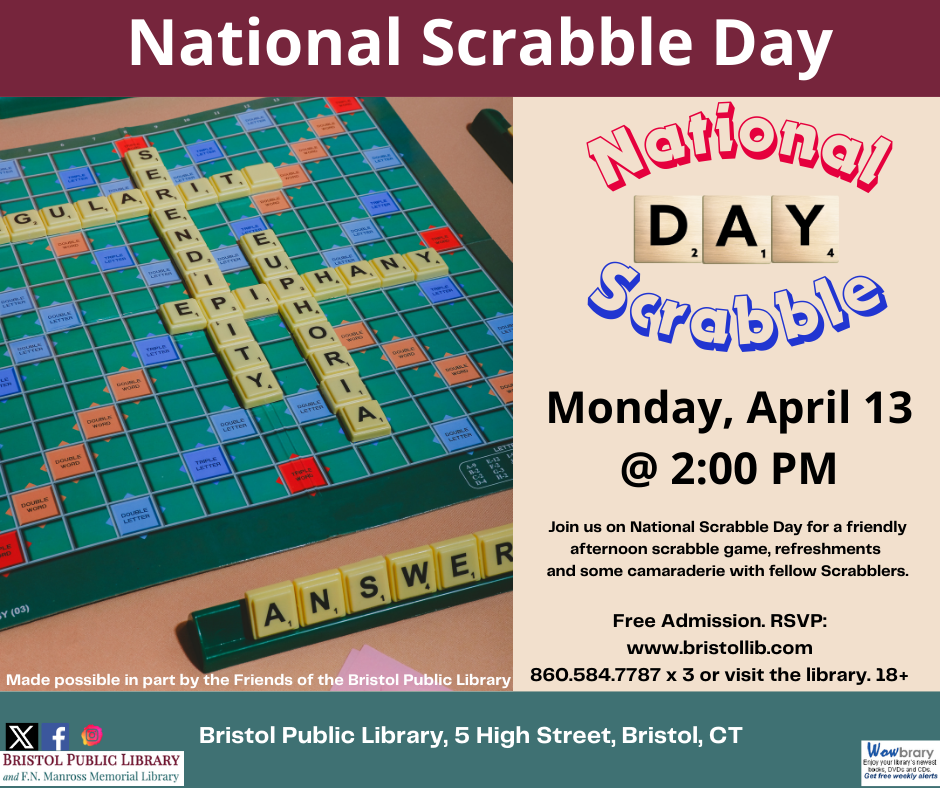RSVP: bristollib.com, in-person at the library, or by calling: 860.584.7787 x 3. 18+