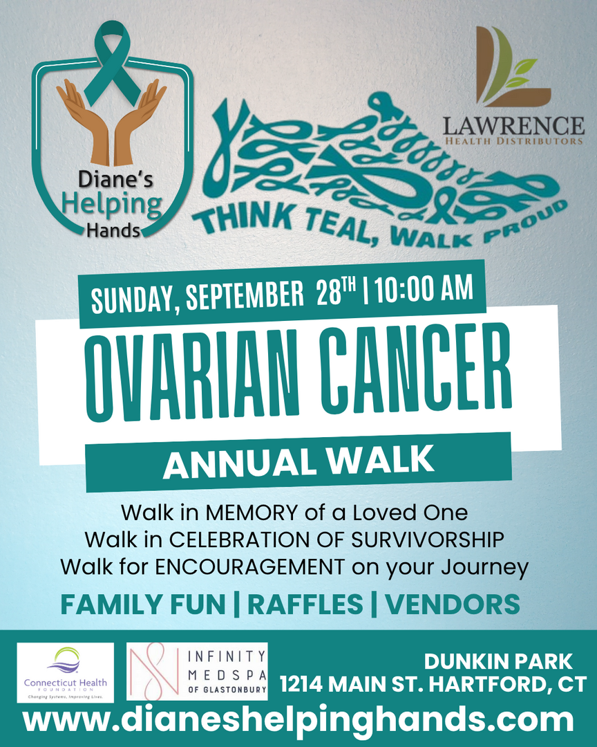 Diane’s Helping Hands Annual Ovarian Cancer Awareness Walk is a community event where families unite as a “Teal” community to support one another on their ovarian cancer journey. Held in loving memory of Diane Glasscock, the walk serves as a platform to raise awareness about ovarian cancer, while also providing hope and encouragement to those recently diagnosed, celebrating survivors, and honoring the memory of loved ones lost. It’s a day of unity, remembrance, and empowerment for all who have been touched by this disease.