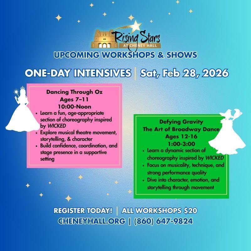 Let your child take center stage at Cheney Hall with an exciting lineup of workshops and theatrical opportunities for young performers! Whether your student is just beginning their journey in the spotlight or looking to refine their professional technique, our Rising Stars program offers a supportive, high-energy environment for growth.