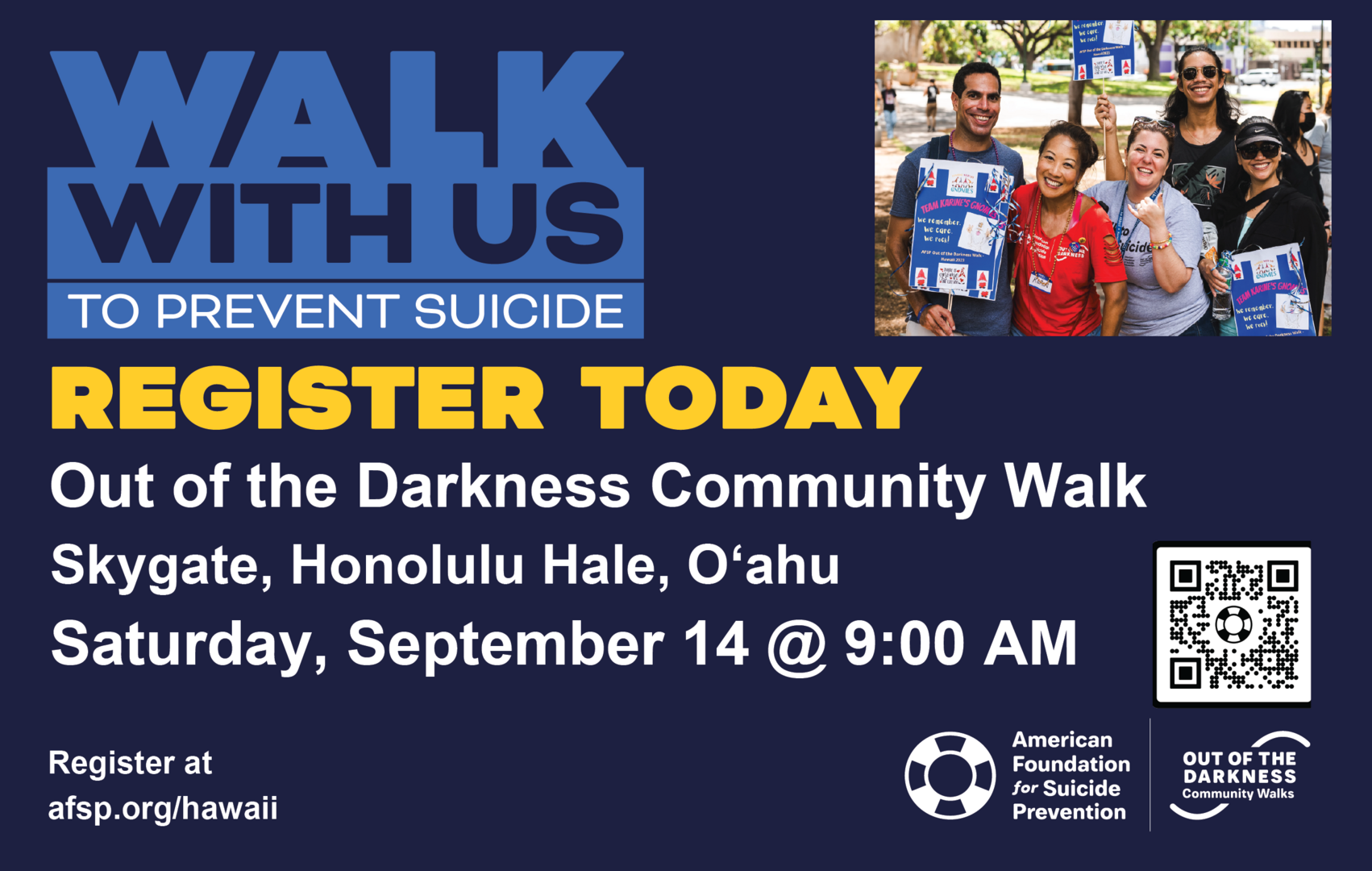 Suicide Prevention (AFSP) is excited to announce the upcoming Out of the Darkness Oʻahu Walk, a