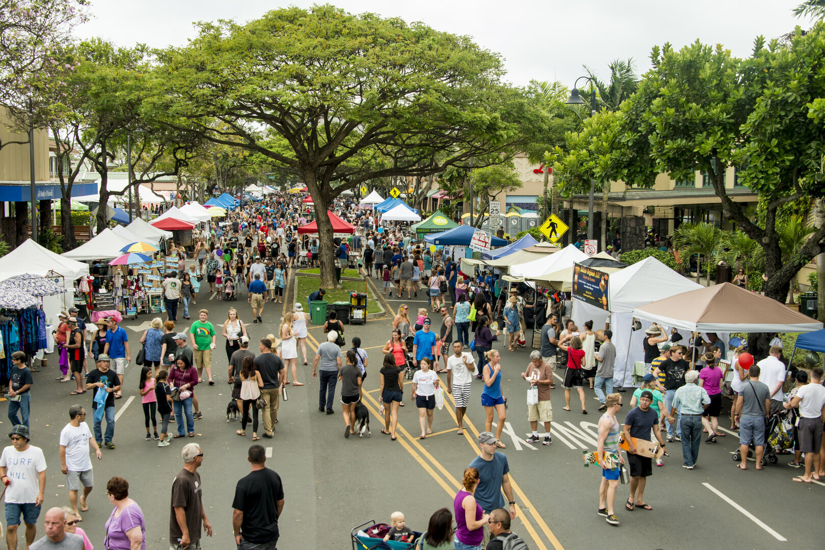 A favorite feature of this signature community block-party in downtown Kailua is the array of food booths with flavorful specialties, from shave ice and malasadas to plate lunch and more. The Town Party is also an opportunity to enjoy shopping, great entertainment, and family fun. Over 75 Windward artists and handcrafters will showcase their work for sale; there will be plant and orchid sales; and the popular “I Love Kailua” logo booth with limited-edition apparel. Many Kailua merchants will hold instore and sidewalk sales plus offer specials to those presenting their Town Party event buttons.