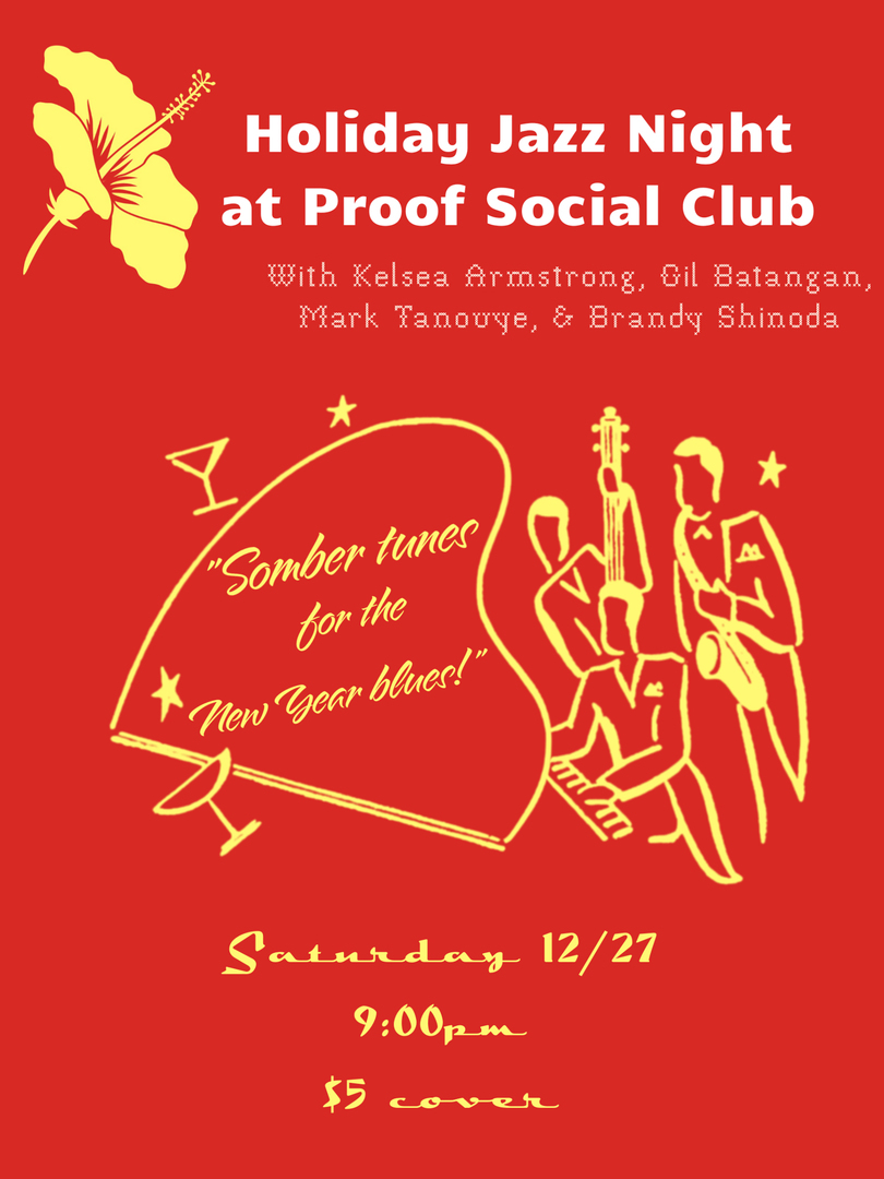 Singer-songwriter Kelsea Armstrong fronts her jazz band in Proof Social Club for an evening of originals, jazz standards and holiday classics