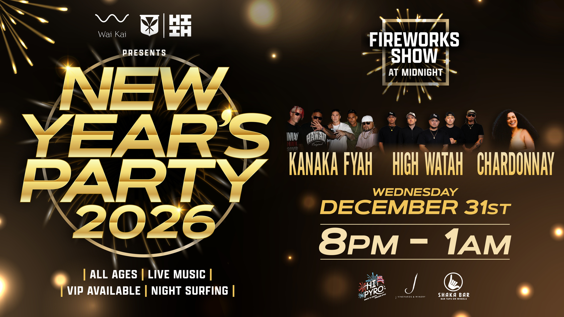 Gather your family and friends for an unforgettable New Year’s Eve celebration at Wai Kai! This property-wide event promises an evening filled with excitement, community, and fun for all ages. Featuring live entertainment presented by Hawaiiʻs Finest, late night activities, dining and a spectacular fireworks show, there’s something for everyone as we bid farewell to 2025 and welcome 2026 in style.