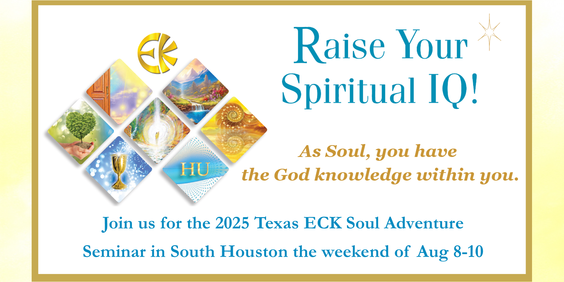 This weekend seminar in South Houston welcomes spiritual explorers everywhere. The event-rich Texas ECK Soul Adventure Seminar will offer attendees creative techniques and spiritual practices that can “raise their spiritual IQs.” These can awaken us to the God knowledge we all have within. Also, to the love for divine things already within our hearts.