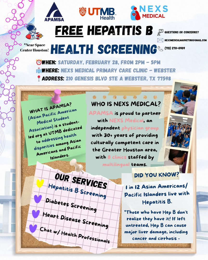 APAMSA (Asian Pacific American Medical Student Association) at UTMB and NEXS Medical proudly support the World Hepatitis Alliance and NOhep initiative to eliminate viral hepatitis by 2030.