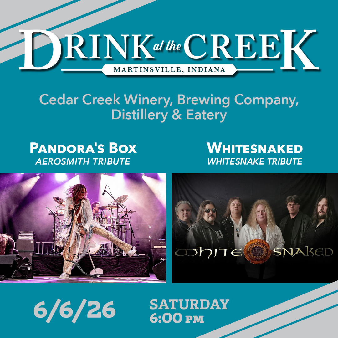 Pandora's Box (Aerosmith Tribute)&Whitesnaked (Whitesnake Tribute)You will be able to purchase tickets at the gate on the day of show. Cedar Creek Winery, Brewing Company & Distillery3820 Leonard Road, Martinsville, Indiana 46151NO Pets on Concert days, except service dogsNO COOLERS! (New Venue Rule)No Chair sleeves! (New Venue Rule)No outside alcohol!No tents or large umbrellas!No Chairs with umbrellas or flip top shade canvas!All Tickets: $15.00 Advance, $20.00 Day of Show (+ Applicable fees)4 for $40 tickets (+ Applicable fees) can ONLY be purchased ONLINE BEFORE Day of ShowBring your own Seating and snacksCoolers are subject to inspectionNo outside alcoholNo tents or large umbrellas!Pandora's BoxThe music of Aerosmith has all the ingredients to make any event successful & one to remember. It brings back memories with their catchy hooks & sing-a-long melodies. With 50 years of multi-platinum selling mega hits starting with vinyl album -era releases like "Dream On" (1973) , "Sweet Emotion" & "Walk This Way" (1975), to MTV era- cassette tape & Cd releases of "Dude Looks Like A Lady" ,"Rag Doll", & "Love In An Elevator" (late 80's).The band penned a string of more chartbusters in the 90's and pinnacled with their first number 1 single ever in 1998 with "I Don't Want To Miss A Thing". You don't have to wait very long to hear one of your favorite songs at a Pandora's Box show!In 2015, Atlanta based singer-frontman Nathan Utz & guitarist Steve Taylor decided to form Pandora's Box Ultimate Aerosmith Tribute not only due to their fondness of the band's music, but also because Nathan has an uncanny resemblance to Steven Tyler & very similar vocal qualities. Steve & Nathan tell a story about walking across a parking lot once & 3 college age young men approached Nathan for an autograph, thinking he was Steven Tyler!It became apparent in the first year of Pandora's Box playing shows that it was quickly taking on a momentum & energy of it's own, playing sell out shows all over the Southeast, up & down the East Coast, Alaska, Hawaii. In 2018 Pandora's Box became Royal Caribbean Cruise Line's top requested headline feature act, which took them international! Whitesnake'd Throughout the course of their musical union, the members of Whitesnaked have won over the hearts of music lovers from all walks of life. Performing at a variety of venues and making countless public appearances This talented Rock Band has earned the admiration and affection of critics and fans alike. Get in touch to learn more about their musical expertise, repertoire, and performance rates.Join our RD Productions VIP Text ListText RDP to815-240-3435Sign-up to receive concert updates!RD Productions, LLC Ticket Refund PolicyAll ticket sales are final and non-refundable.In the event the concert is cancelled due to extreme weather or other circumstances,RD Productions, LLC will give a full ticket refund within 90 days of the concert date.If the concert is scheduled for another date tickets can be used for that concert only.However once any of the performance starts at any RD Productions, LLC concert, there will be NO Refunds!