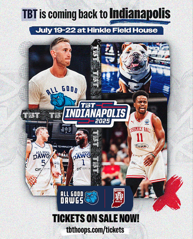 The Basketball Tournament (TBT) is a $1 million, winner-takes-all event — and it’s coming to Indianapolis this summer! The regional will be hosted by All Good Dawgs (Butler Alumni) and Assembly Ball (Indiana Alumni), featuring stars like Yogi Ferrell and Shelvin Mack.