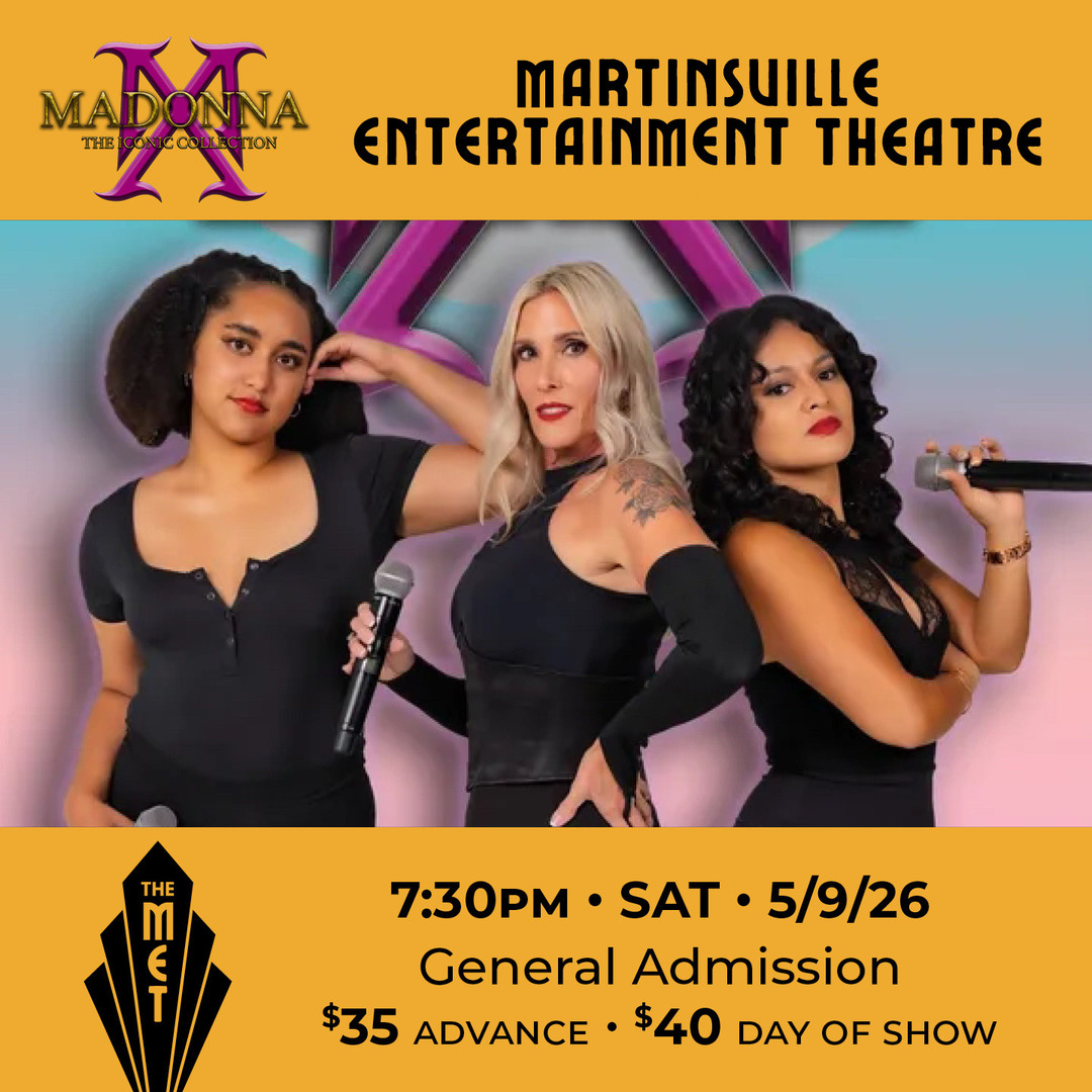 Madonna X(Madonna Tribute)May 9, 2026 7:30Doors open at 6:30 PMAdvance Ticket $35 + Applicable feesDay of Show Ticket $40 + Applicable feesFood and beverages are on the premises.There will be no outside food or drinks permitted.Join us for a great night of Music and Fun!Madonna XAmerica’s #1 Tribute to the Queen of Pop, MadonnaMadonna X: The iconic collection isn’t just another tribute band- it’s the ultimate celebration of pop royalty coming to stages across the nation. Madonna X is an experience of a boundary-pushing spectacle featuring her greatest hits and bold new creative ventures that will remind everyone why she’s remained untouchable for decades. Don’t miss the chance to witness music history- Madonna X