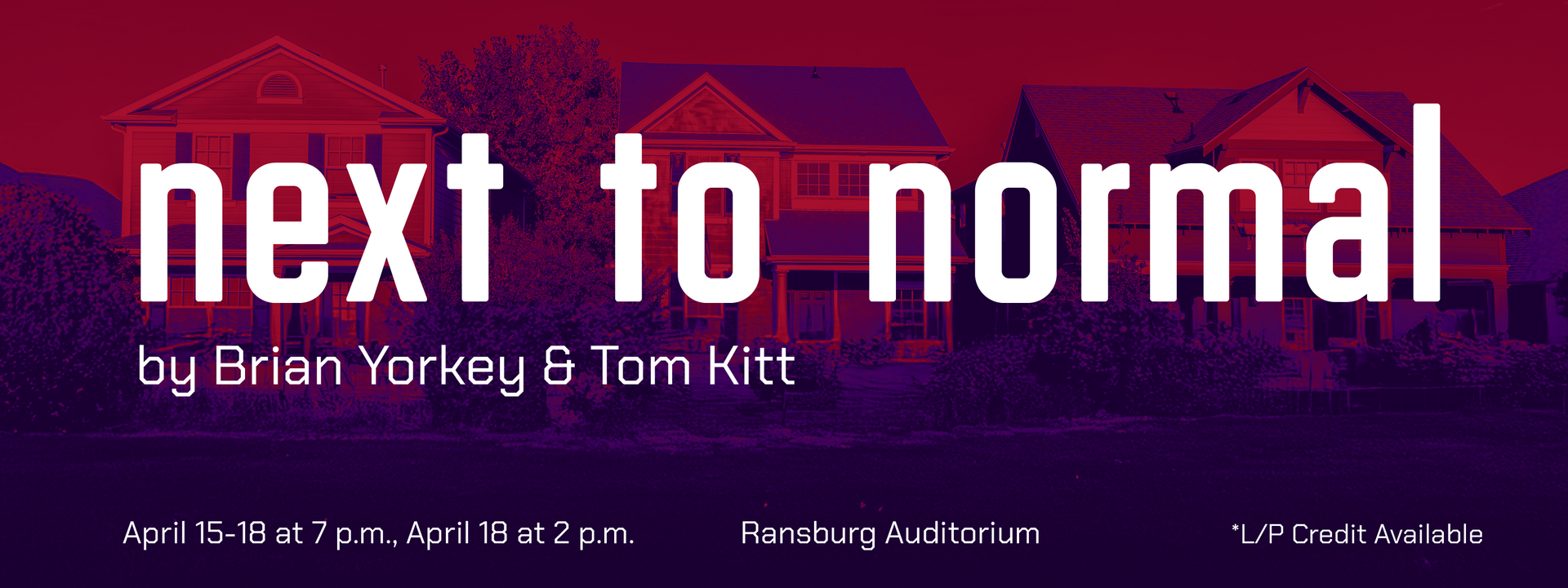 Next to Normal is presented through a special arrangement with Music Theatre International (MTI). All authorized performance materials are also supplied by MTI. mtishows.com