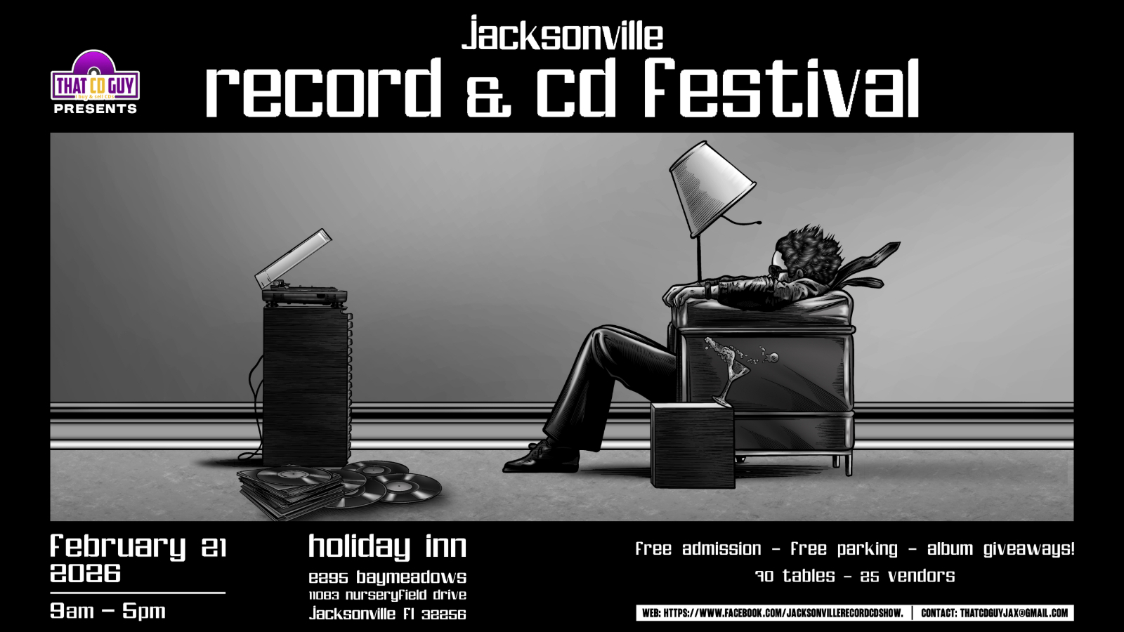 You're invited to North Florida's biggest music lovers event- the Jacksonville Record & CD Festival! Are you a record or CD collector? Like cassette tapes? Concert posters? Band shirts? Music memorabila? If so, this is THE event for you!