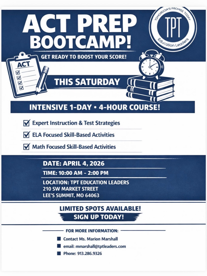 Whether a student is preparing for their first ACT or aiming to improve an existing score, this bootcamp provides the tools and insight needed to make measurable progress.