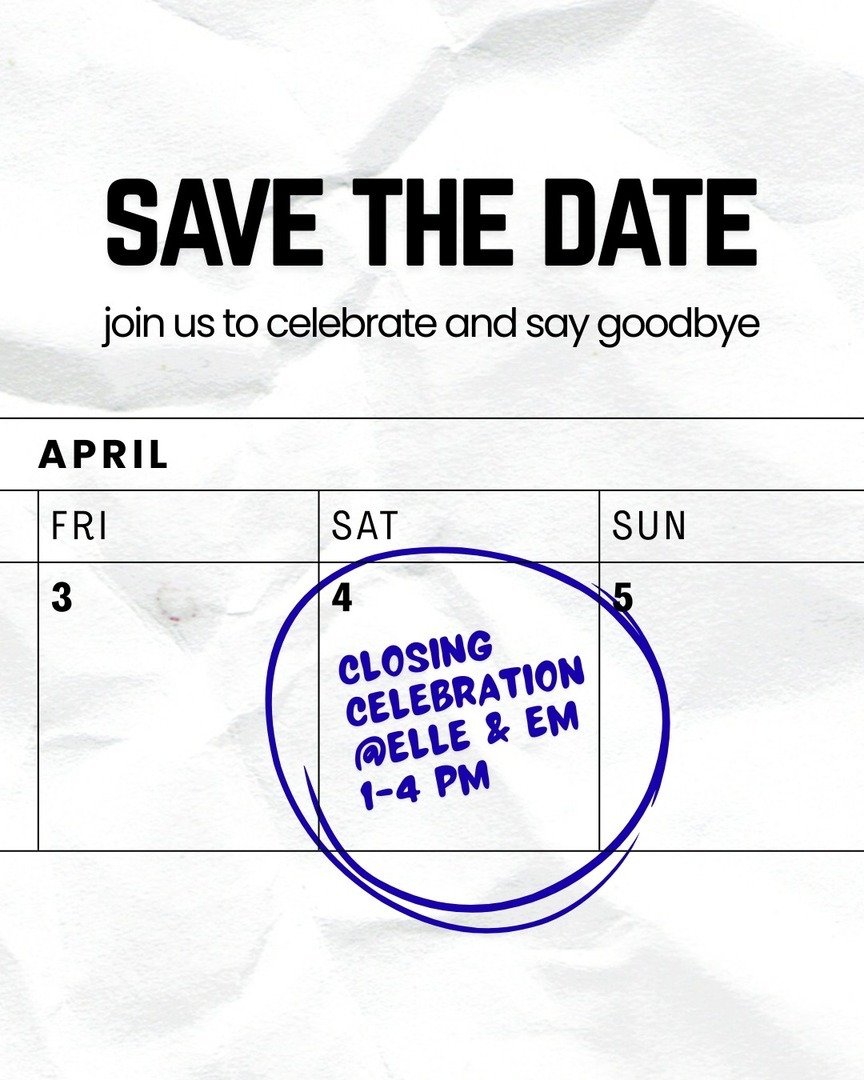 HomeEventsClosing Celebration Closing Celebration Saturday, April 04, 2026 1:00 PM - 4:00 PM 1:00 PM - 4:00 PM See all dates and Times Elle & Em Boutique Parking Deals Get a Ride LYFT UBER Add to Calendar 04/04/2026 01:00 PM 04/04/2026 04:00 PM America/Atikokan Closing Celebration Join us in celebrating 8 great years in downtown Lee's Summit! Sips and bites provided. Details & Tickets: https://www.upcomingevents.com/kansas-city/events/elle-em-boutique/closing-celebration-629663?ref=uceaddevent Elle & Em Boutique, 9 Southeast 3rd Street, Lee's Summit, MO, 64063 Set Reminder Categories Business-Related, Sales & Retail, Shopping Neighborhoods Highview Estates (Kansas City)Little Blue Valley (Kansas City)Robandee South (Kansas City)Unity Ridge (Kansas City) Join us in celebrating 8 great years in downtown Lee's Summit! Sips and bites provided.