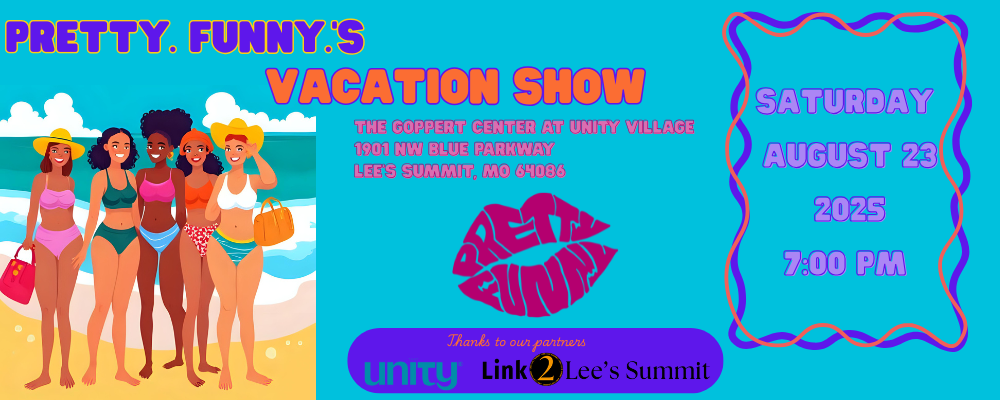 Pretty. Funny. Vacation Show!A Comedy ShowcaseReady to laugh until your cheeks hurt?Join the women of Pretty.Funny. for a bold, fearless, and downright hilarious night of comedy at the brand-new Goppert Center in Unity Village.This isn’t your average comedy show—it’s a high-energy mix of:Quick-witted improvSharply written sketchesBrilliant musical parodiesUnexpected physical comedyAnd a few surprises we’re keeping under wrapsSaturday, August 23Cocktail Hour: 6 p.m.Showtime: 7 p.m.Come for the jokes, stay for the vibes—and leave with a new favorite comedy crew.Tickets are going fast—grab yours before they’re gone!