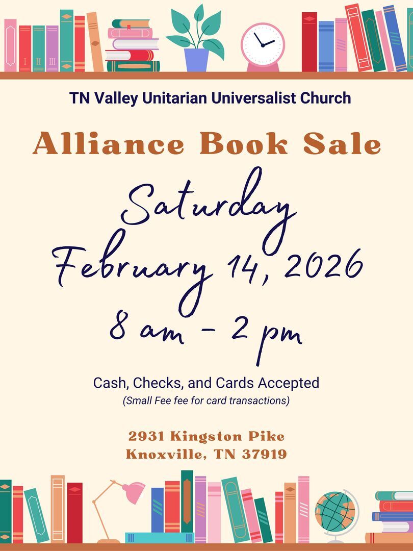 The TVUUC Alliance Book Sale is back, and it’s bigger than ever! Come browse an amazing selection of books, CDs, games, puzzles, and so much more. Whether you are hunting for your next great read, stocking up on rainy‐day activities, or love a good bargain, you will find something delightful waiting for you.