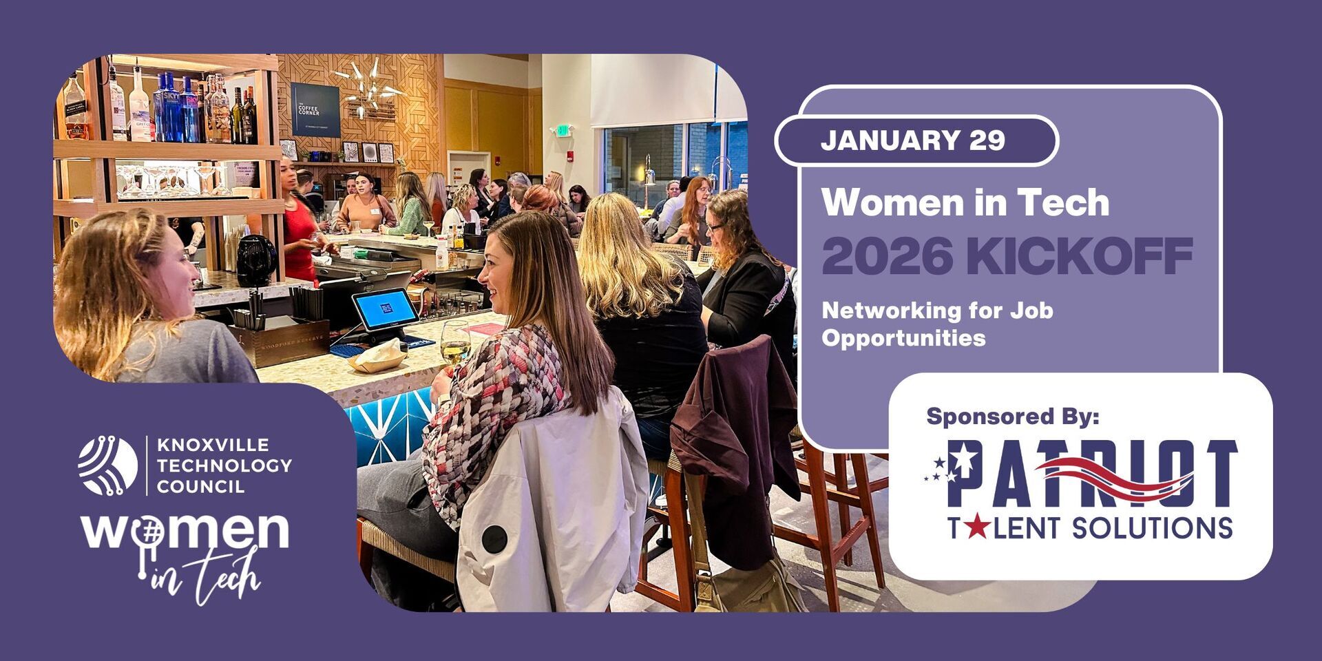 Join us to kick off 2026 by building new connections within Knoxville’s women in tech community and getting a sneak peek at what WiT has planned for the year ahead! This happy hour’s theme is “Networking for Job Opportunities,” and we’ll feature a brief spotlight on tech roles our members are recruiting for right now.