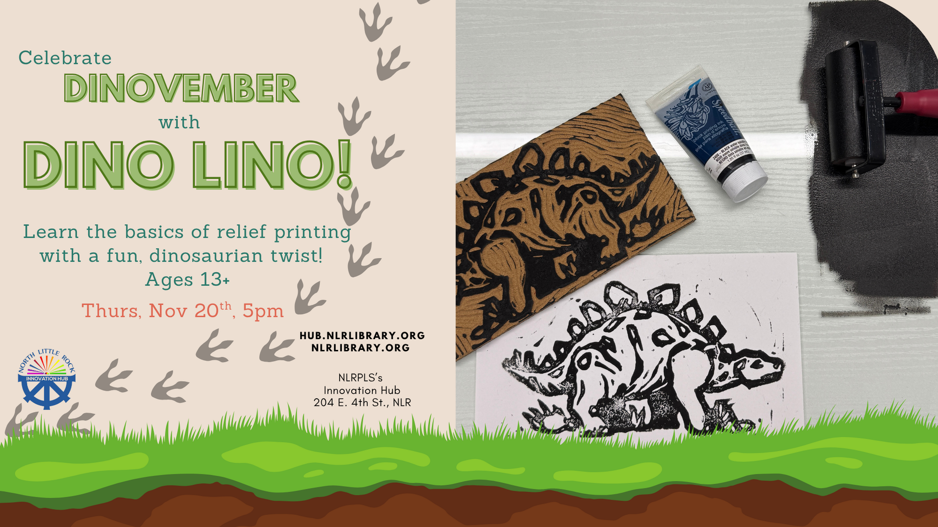 FREE Class: Dino Lino Stamps - Learn the basics of relief printing with a fun, dinosaurian twist!