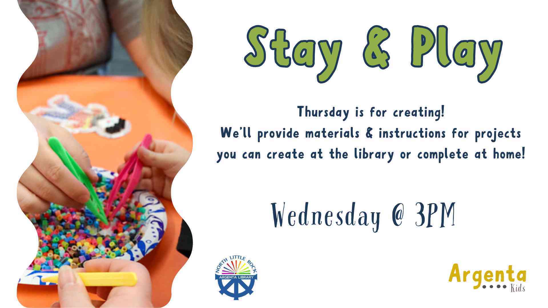 Let’s PLAY! Make new friends & try something new at the library! We bring the materials; you bring the fun.