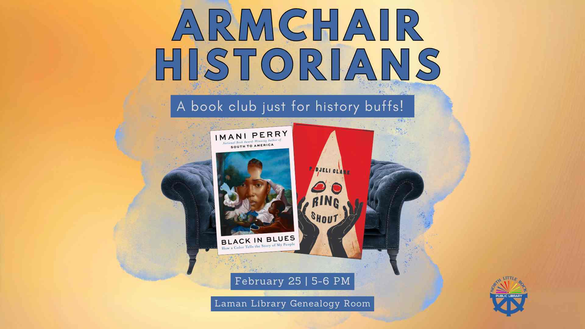No registration is required. Adults of all ages are welcome. Reading is encouraged but not required to join in on the conversation. Check out the book Black in Blues by Imani Perry OR Ring Shout by P Djeli Clarke at the library or on Libby!