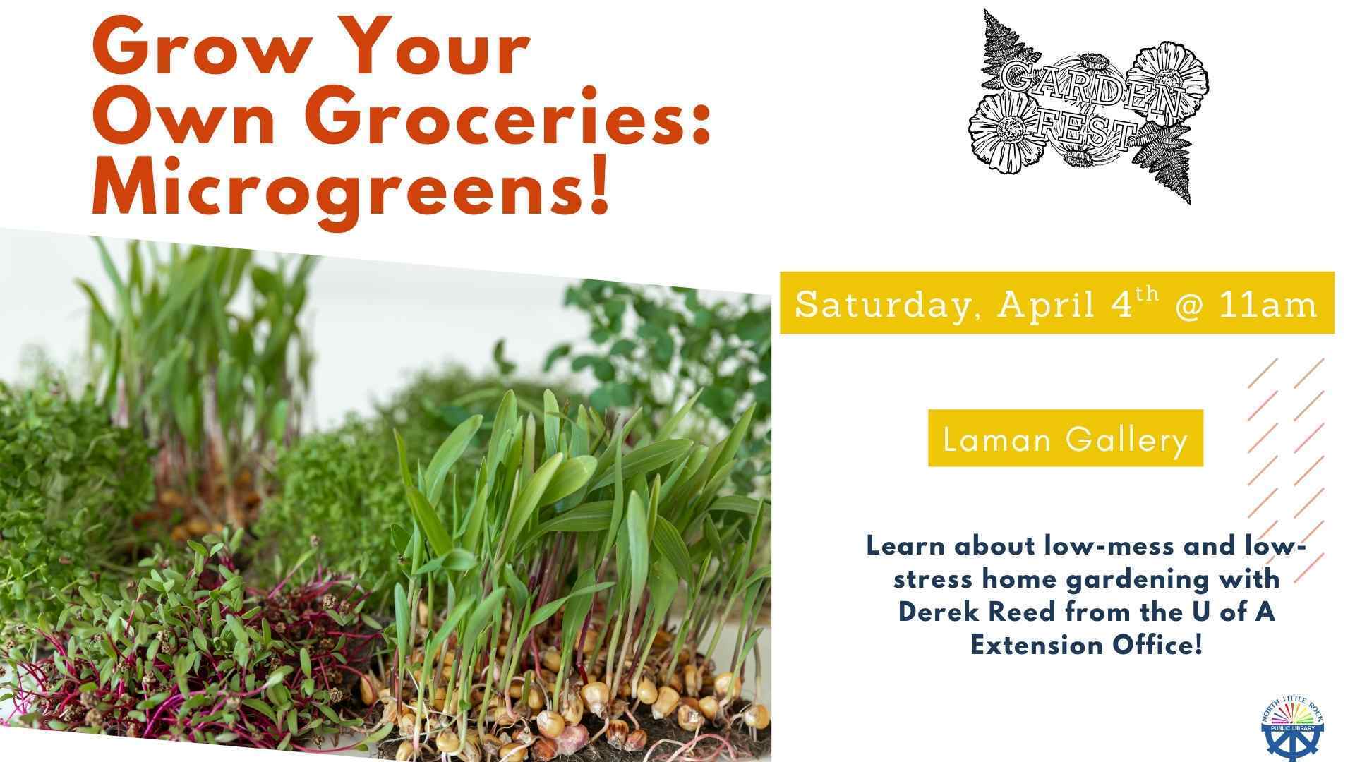 Come to the Gallery and learn about low-mess and low-stress home gardening with Derek Reed from the U of A Extension Office!