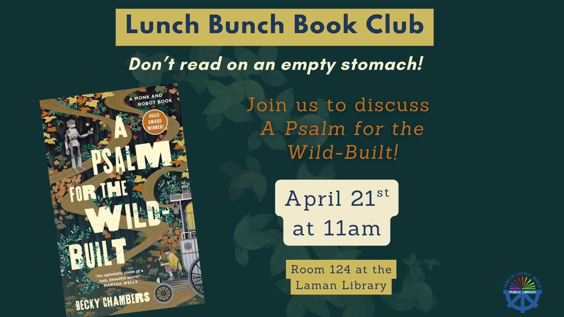 Bring your lunch and join us for a lunchtime book club! This month we will discuss "A Psalm for the Wild-Built" by Becky Chambers.