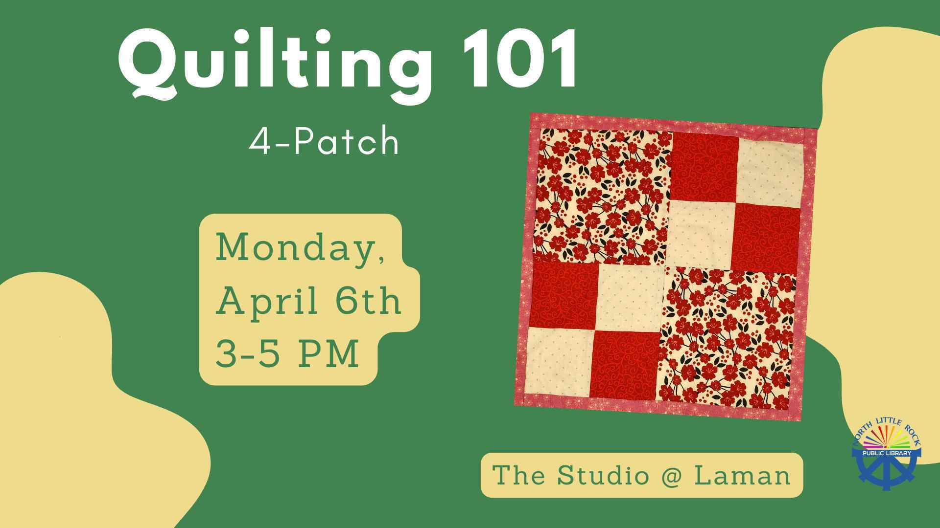 This month we will learn all about the 4-Patch quilt block. On the surface it looks like it is the easiest block to make, and it probably is. We will go over not only piecing this block, but the use of color placement to help make this block look great. This is the second block in our 101 class. This program is open to all adults who can sew a straight line on a sewing machine. All instructions and materials are provided, and no registration is required. Email Peggy at [email protected] with any questions.