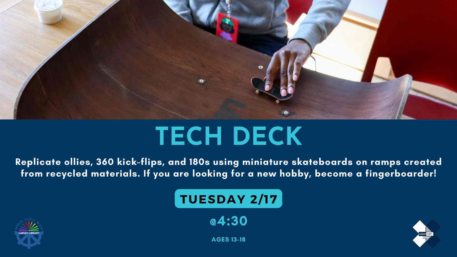 We have a limited quantity of tech decks, so bringing your own is encouraged. No registration required.