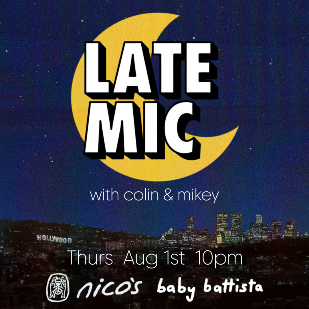 Late Mic is LA's only late night talk show open mic hosted by Colin Burgess and Mikey Heller. Expect stand-up, characters, bits, interviews, special guests and some good ol' fashioned banter. Performers get 2 minutes for regular stand-up, or 4 minutes to do something at the desk. Just write down anything we need to know when you sign up (cards provided). Free to watch, one item minimum to perform.