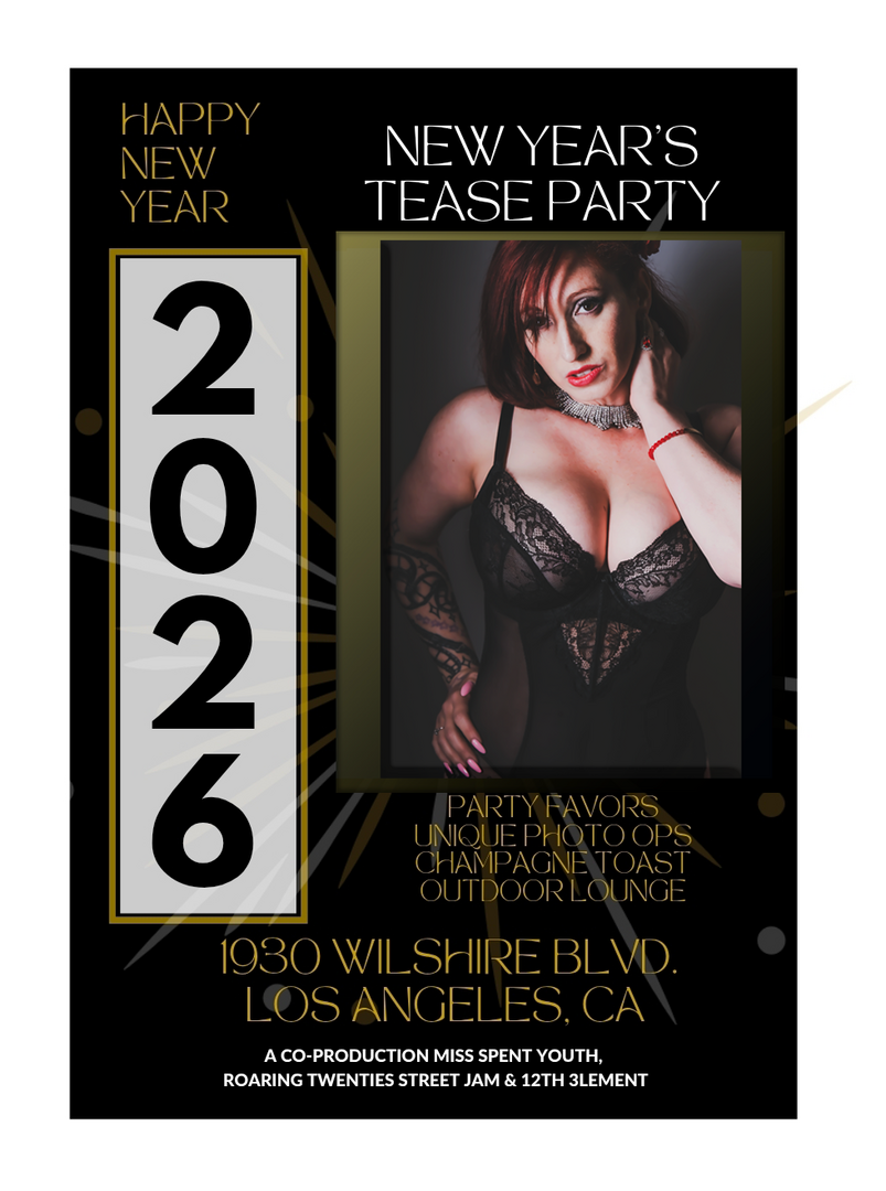 Step into the magic of a little tease for New Years at a posh private club in DTLA, where glamour meets excitement. Enjoy the convenience of gated parking and unwind on our inviting heated outdoor patio, perfect for mingling and celebrating.