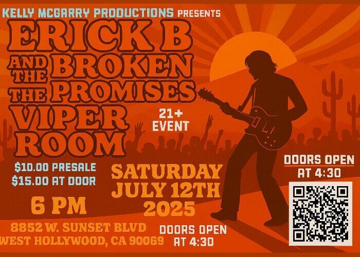 ERICKB & The Broken Promises are hitting the legendary Viper Room stage on Saturday, July 12th!