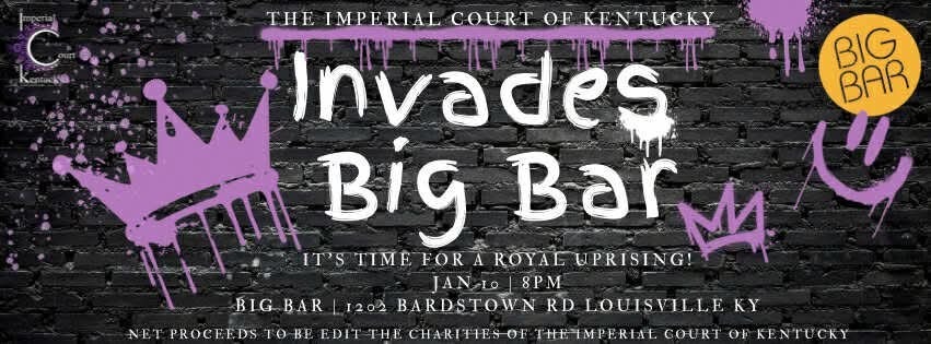 Then join the Imperial Court of Kentucky on Saturday 10 January as we invade Big Bar and cause a royal uprising at 8:00 pm.