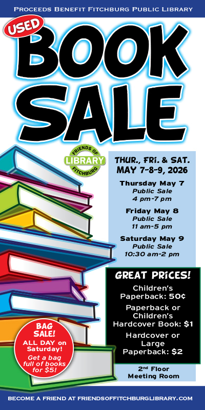 The Friends of the Fitchburg Library (FOFL) will hold a used book sale May 7-9 at the Fitchburg Public Library, 5530 Lacy Road.