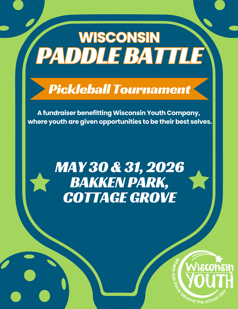 Wisconsin Youth Company is proud to host its 2nd annual Wisconsin Paddle Battle: Pickleball Tournament on May 30 & 31 at Bakken Park. The Wisconsin Paddle Battle benefits youth served by Wisconsin Youth Company in Dane and Waukesha counties. Through before & after school programs, 4K Wrap, summer camps, and operating Elver Park and Theresa Terrace Neighborhood Centers on Madison’s southwest side, Wisconsin Youth Company provides opportunities for children to be their best selves.