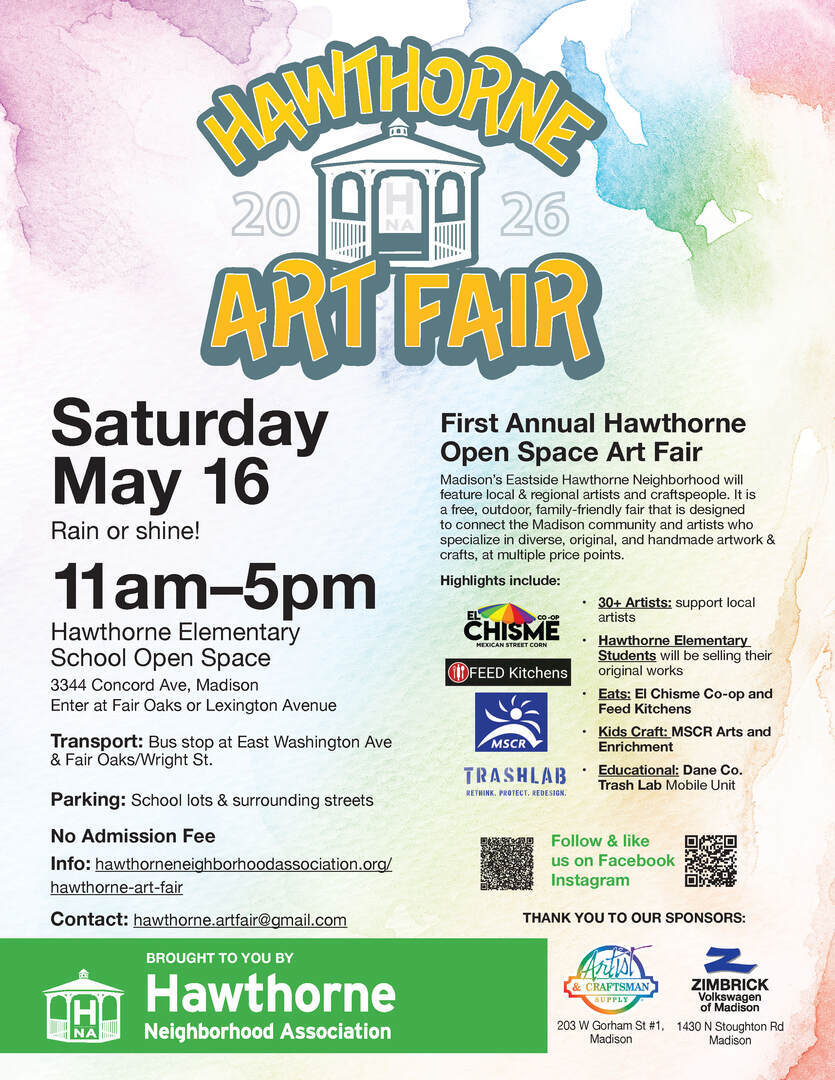 The fair will feature an art make & take table sponsored by MSCR Arts & Entertainment, Buttons designed by Hawthorne Elementary Students will be available for sale, Dane County Trash Lab and Eli's Art Supplies- The only place in Madison that has a legal graffiti wall! Local favorites Feed Kitchens and El Chisme will serve goodies, food and refreshments for sale throughout the day.