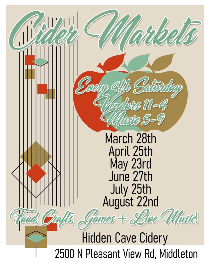 Madison Makers Market is excited to announce the second date in our brand new event series in Middleton this spring! Join us for the second Cider Market at Hidden Cave Cidery at 2500 N. Pleasant View Road on Saturday, April 25.