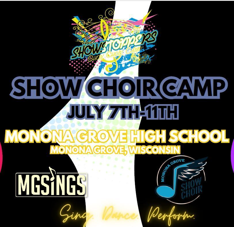 Young Performers Grades K-8 Welcome! SHOWSTOPPERS Show Choir Camp is a high energy, fast paced and uplifting experience of performing arts excellence. Campers learn multiple songs and dances to be performed on stage at the end of an empowering performing arts experience. SHOWSTOPPERS Campers will be the opening act on July 11th for the “Kids From Wisconsin” performance at Monona Grove High School!