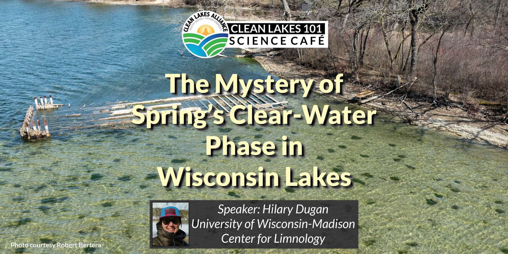 Each spring, many lakes in Wisconsin undergo a remarkable transformation. They suddenly turn strikingly clear. This “clear-water phase” happens when booming populations of tiny zooplankton rapidly graze down spring algae, briefly reshaping the entire food web. In this talk, Dugan will explore how temperature, light, nutrients, and predator–prey interactions combine to create one of the most dramatic and short-lived events in our lakes.