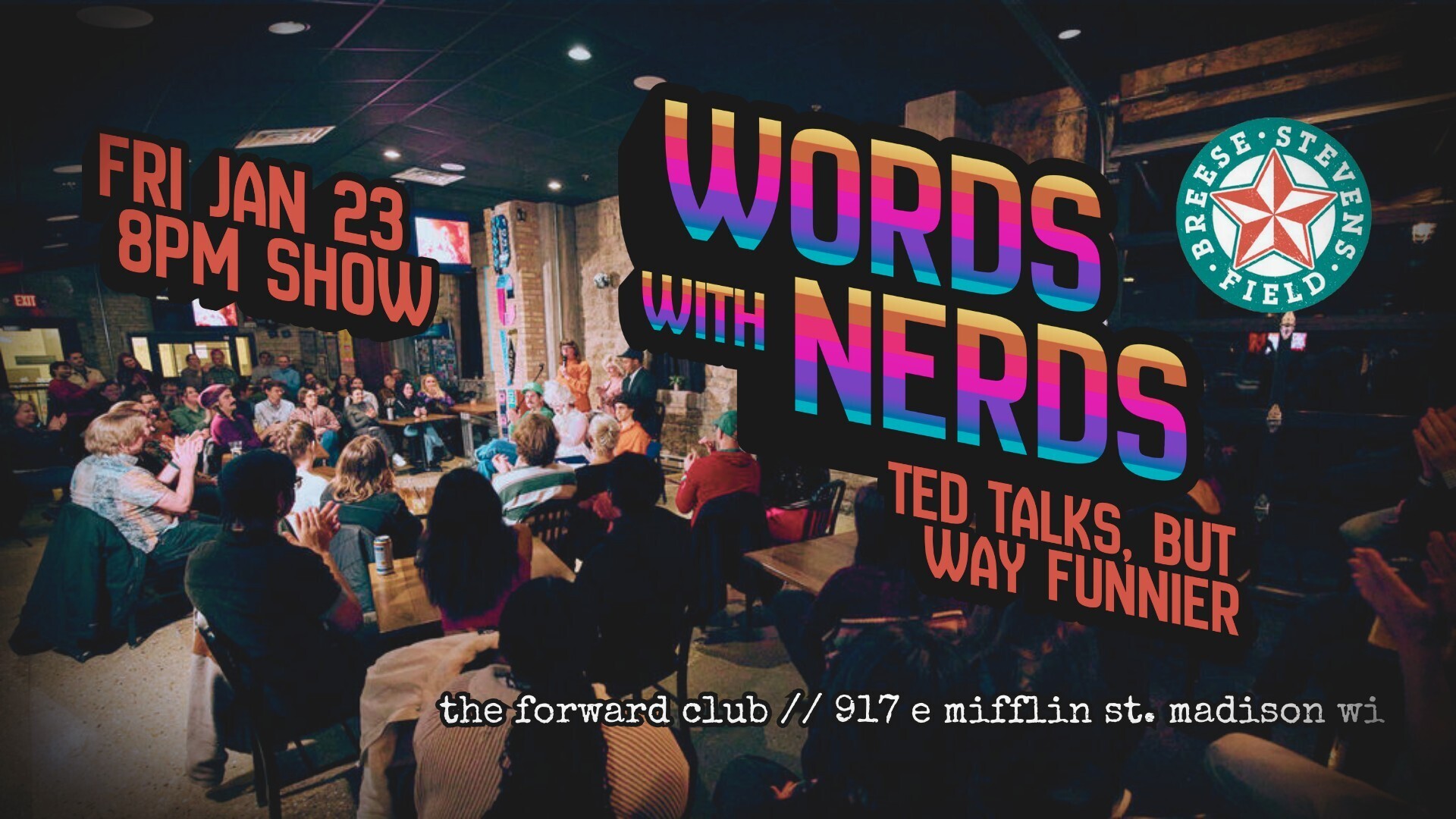 Words with Nerds is produced by Best of Madison-winner Cheshire Cat Comedy and began in 2022 as a monthly event on the third Thursday of every month at Crucible, Madison’s premier alternative arts club. The showcase has since blossomed into a featured showcase at locations such as The Forward Club at Breese Stevens Field; Comedy Cabin in Janesville, WI; and The Lincoln Lodge in Chicago, IL. Presenters span entrepreneurs, educators, researchers, activists, union organizers, surgeons, engineers, and stand-up comedians with an itch to nerd out on stage.