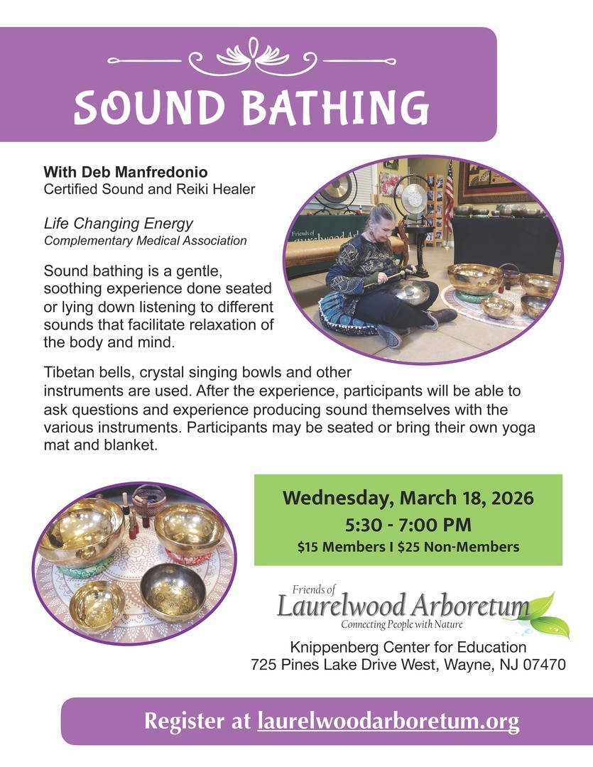 Tibetan bells, crystal singing bowls and other instruments are used. After the experience, participants will be able to ask questions and experience producing sound themselves with the various instruments. Participants may be seated or bring their own yoga mat and blanket.