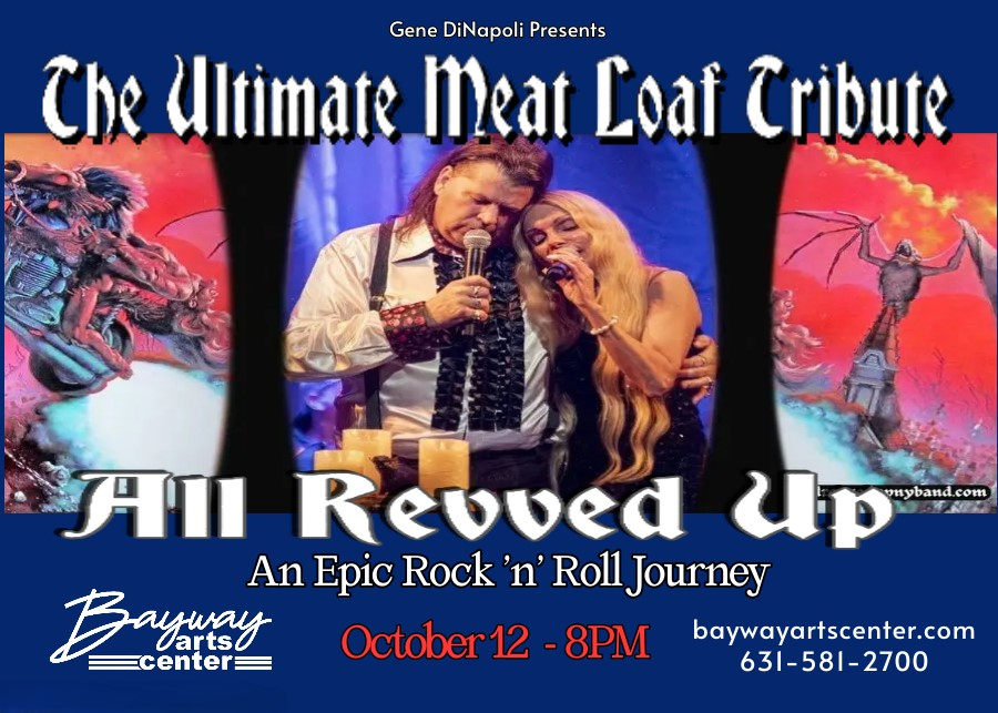 Get ready for a night of rock ‘n’ roll magic with All Revved Up, the ultimate Meat Loaf tribute band! Since 2013, this eight-member ensemble has been electrifying audiences with spot-on replicating Meat Loaf’s distinctive sound and style. Their theatrical performances, complete with intricate choreography and dramatic costume changes, are mesmerizing. Led by the talented John Doboe, they deliver classics like “Bat Out of Hell,” “Paradise by the Dashboard Light,” and “I Would Do Anything for Love” with authenticity and passion. Catch them live at the Bayway Arts Center in East Islip, NY, on October 12 at 8 PM. This show promises to be a spectacular event, filled with the energy and excitement that Meat Loaf fans adore. Every note and move is a heartfelt tribute to the legendary artist. All Revved Up’s versatility and passion for rock ‘n’ roll shines through in every performance. Whether they’re playing in intimate venues, grand concert halls, casinos, or lively festivals, their music connects with audiences of all sizes. Their ability to deliver a powerful and engaging show is unmatched. Meat Loaf enthusiasts, this is a must-see event! Don’t miss your chance to experience the iconic songs and music that have captivated millions. Secure your tickets at baywayartscenter.com or by calling 631-581-2700. Don’t miss out on this opportunity to relive the magic of Meat Loaf’s music live on stage. Whether you’re a long-time fan or new to Meat Loaf’s music, All Revved Up offers an unforgettable experience that will leave you wanting more. Join us for a night of rock ‘n’ roll, nostalgia, and entertainment on Oct 12 at 8pm at Bayway Arts Center!