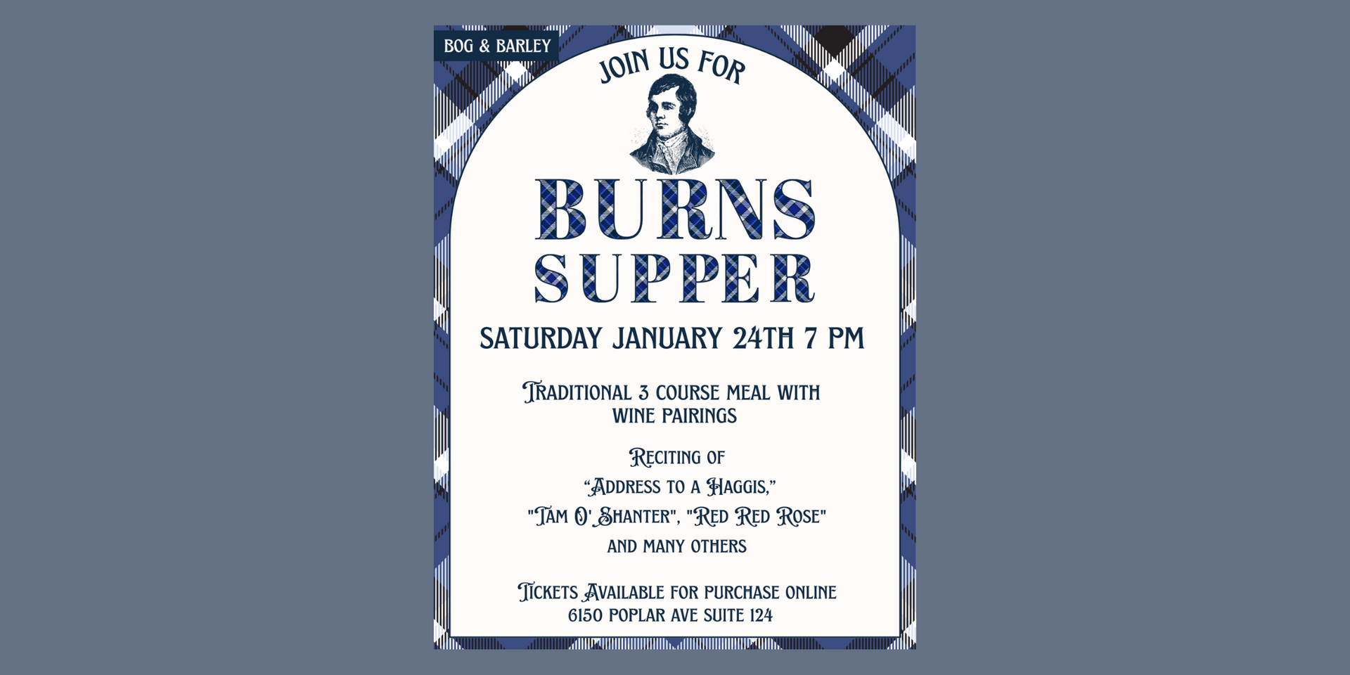 Celebrate Scotland’s most beloved poet with an unforgettable evening of food, music and tradition at Bog & Barley.