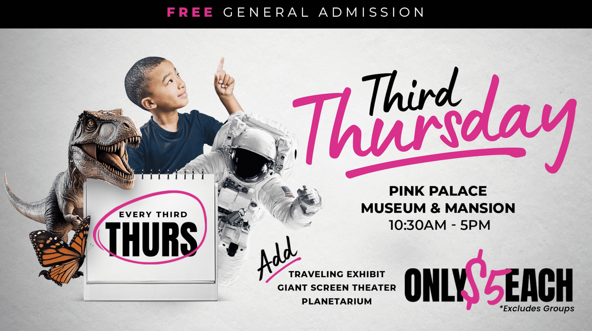 Beginning this month, the Pink Palace Museum & Mansion will offer individual General Admission entry free of charge on the third Thursday of each month.