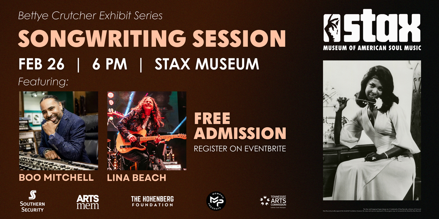 As part of the Stax Museum’s exhibit honoring legendary Stax songwriter Bettye Crutcher, the Stax Museum is hosting a special live songwriting session on Thursday, February 26, featuring Boo Mitchell and Lina Beach.
