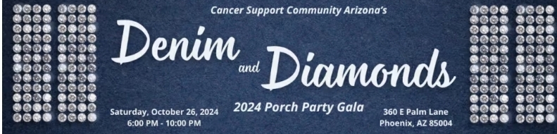 Cancer Support Community Arizona (CSCAZ) will host their annual Porch Party Gala on Saturday, October 26 at their historic Pam Lane campus in Downtown Phoenix. This year’s theme is “Denim and Diamonds” and will feature an artisan plated dinner, live auction, raffle, dancing, and more. This is CSCAZ’s biggest fundraiser of the year and helps fund more than 100+ free programs for those impacted by cancer, each month.