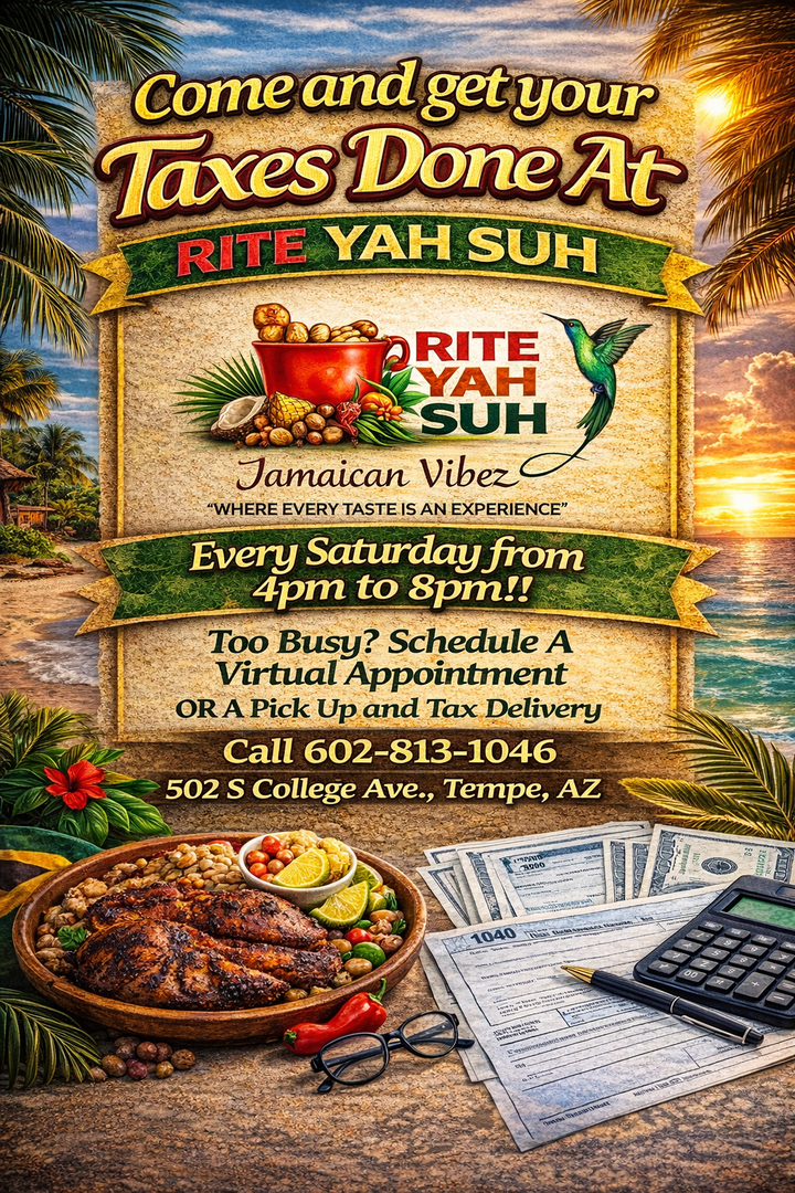 Tax season just got a Caribbean twist! Join us for Tax Day at Rite Yah Suh Jamaican Vibez Restaurant, where you can get your taxes prepared while enjoying authentic Jamaican food and island vibes. π΄β¨