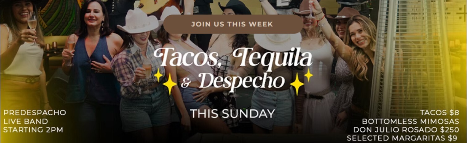 Tacos, Tequila & Despecho is a weekly Sunday celebration at Mayami Wynwood, blending Mexican fusion dining with live entertainment and vibrant energy. Every Sunday, guests enjoy a Predespacho live band starting at 2:00 PM, creating a lively daytime-to-evening experience in the heart of Wynwood.
