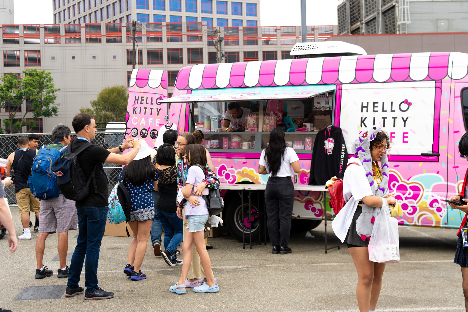 The Hello Kitty Cafe Truck is a mobile pop-up experience celebrating all things Hello Kitty and carries Hello Kitty collectibles and sweet treats that are exclusively available only on the truck or at the brick & mortar shops in Irvine and Santa Clara, California. The first Hello Kitty Cafe Truck was first launched in 2014, and today, there are three Hello Kitty Cafe trucks crisscrossing the country with over 100 U.S. cities visited to date.
