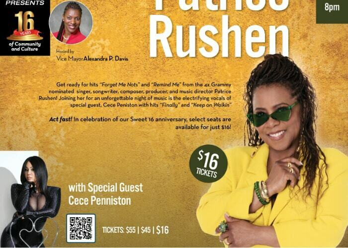 Her songs still shake the dance floors today! Get ready for hits "Forget Me Nots" and "Remind Me" from the 4x Grammy nominated singer, songwriter, composer, producer, and music director Patrice Rushen! Joining her for an unforgettable night of music is the electrifying vocals of special guest, Cece Peniston with hits "Finally" and "Keep on Walkin"