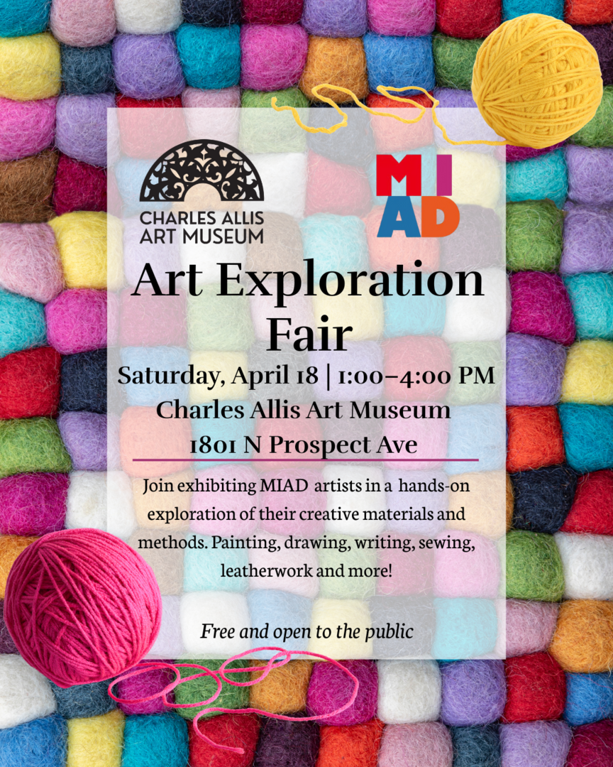 Join MIAD exhibiting artists to discover new creative materials and processes in this hands-on art fair at the Charles Allis Art Museum. Artists will walk participants through their creative methods and guide guests in short tutorials at their station. Experiment with mixed media drawing, conservation painting, sewing and fabric arts, writing and archiving, and more!Free and open to the public!